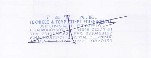 Γ. ΒΑΦΟΠΟΥΛΟΥ 23 ΘΕΣ/ΝΙΚΗ Τ.Κ.: 54646 ΑΦΜ:998971777 ΔΟΥ: ΦΑΕ ΘΕΣ/ΝΙΚΗΣ Μ.Α.Ε.: 67094/62/Β/08/0191 ΤΗΛ:2310428162, 2310428292, FAX: 2310428197